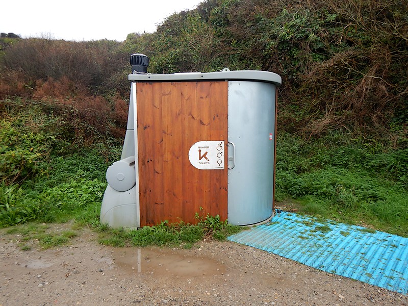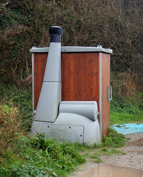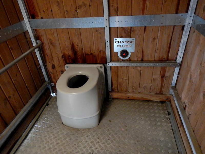 Des toilettes sèches fonctionnant sur la déshydratation des effluents avec ventilation constante sans énergie. Entretien deux fois par an. Ce modèle a passé le cap de l'été 2025 sans encombre mais déplaît à une organisation administrative (l'Architecte des Bâtiments de France) pour son manque d'intégration bretonne. Le modèle qui ne fonctionne pas est bien mieux intégré.