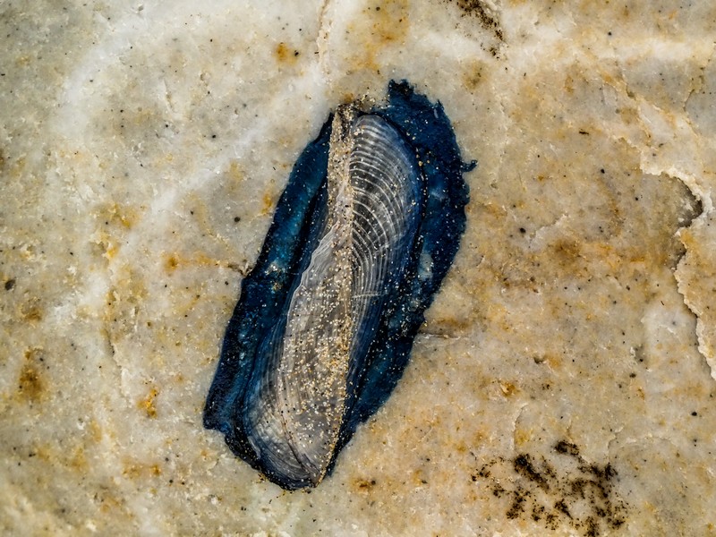 La Vélelle en vie est bleutée avec des polypes (filaments) bleus dont