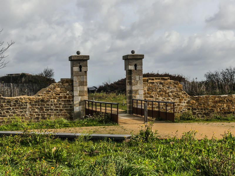 Couloir pour quitter la batterie haute (haut de falaise) pour aller à la batterie basse (niveau de la mer). Les murs protègent des éclats ennemis.