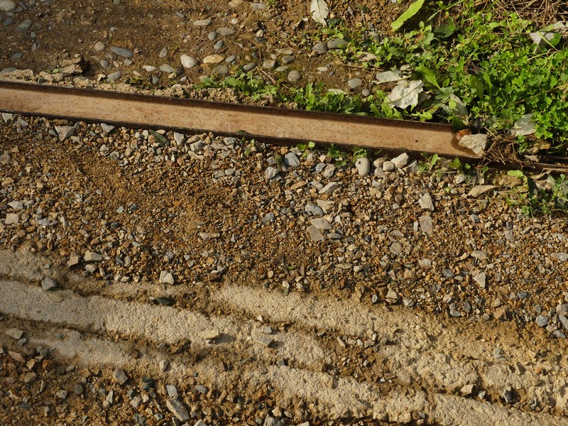 Vestiges de rails. Pour wagonnets transportant souvent des obus, ou plus généralement des caisses de matériel.