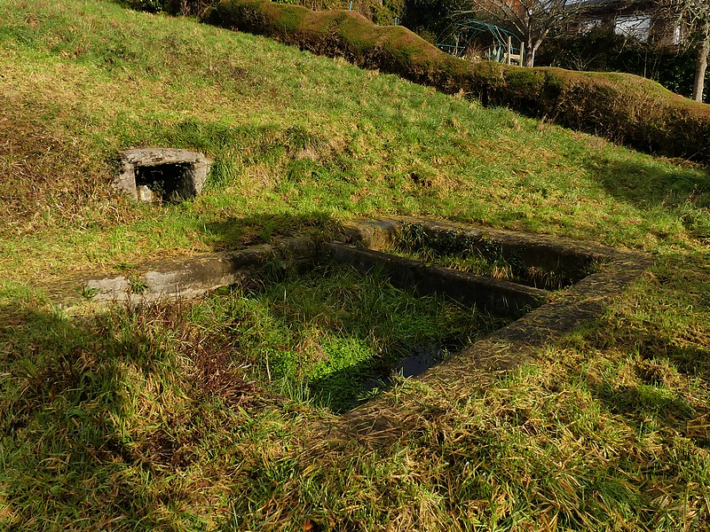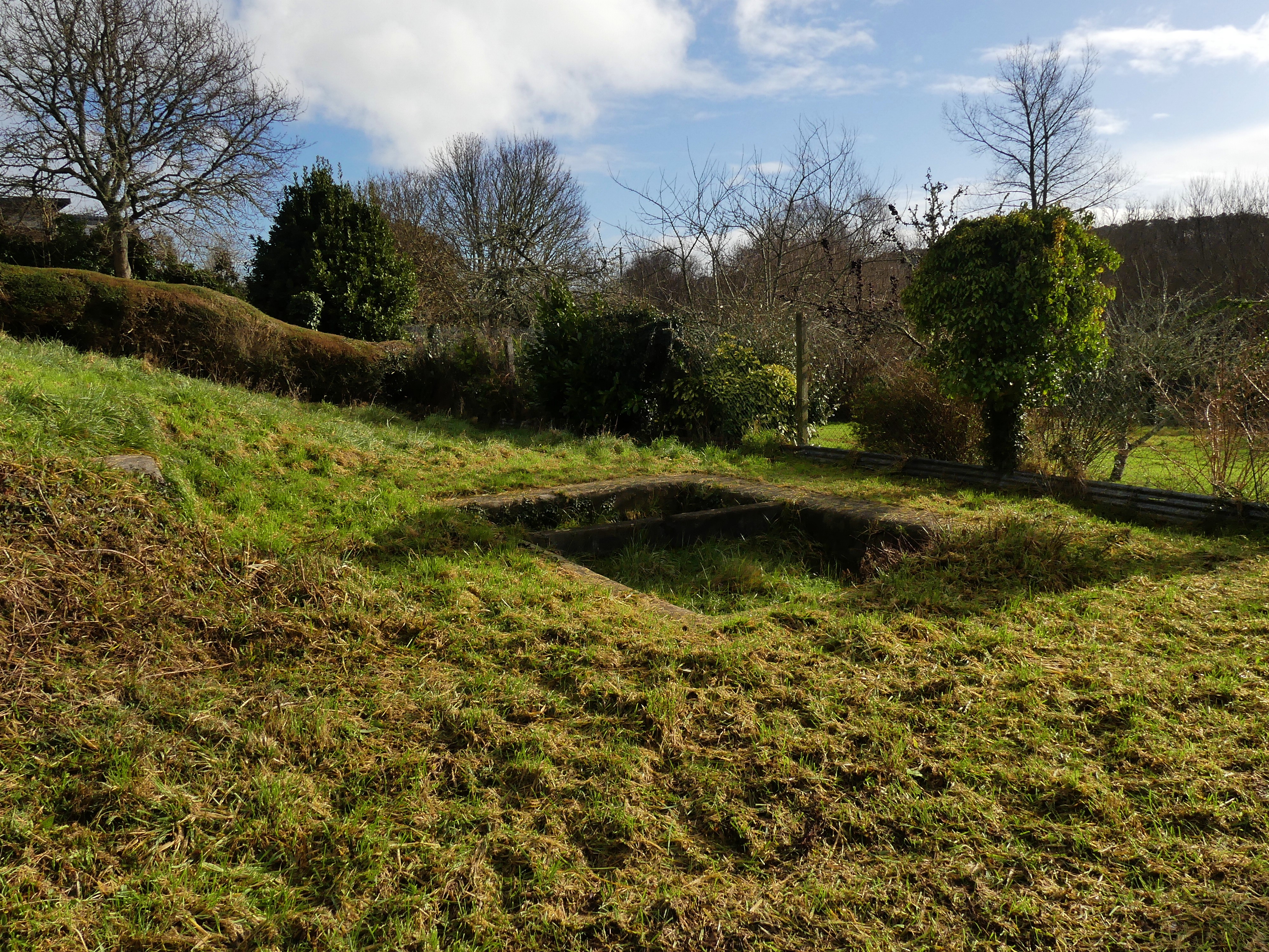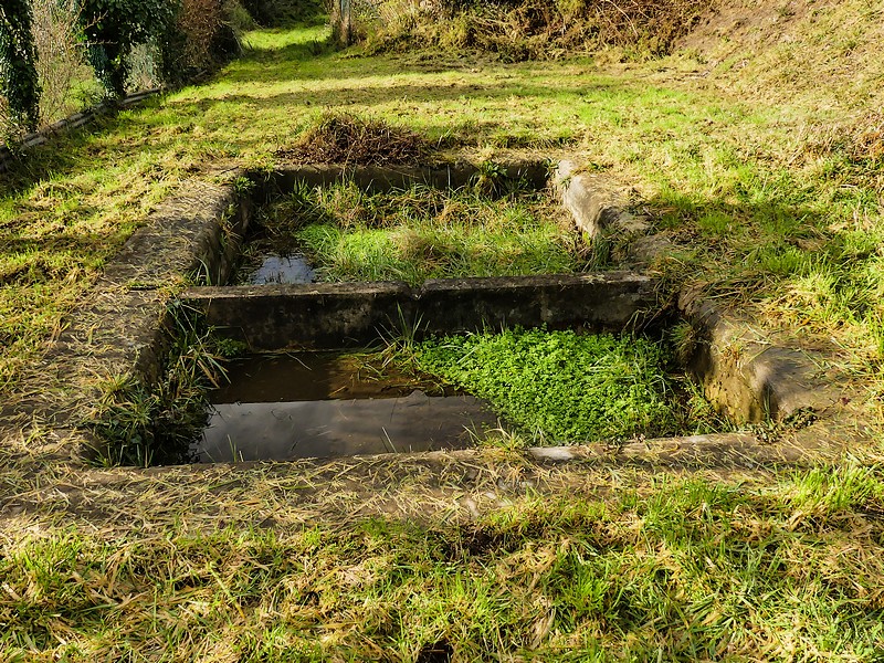 Lavoir deux bassins entièrement crépis et une fontaine bétonnée en lisière de la zone humide du cœur de Morgat. L'ensemble est proche d'un poste de relèvement des eaux usées du quartier.