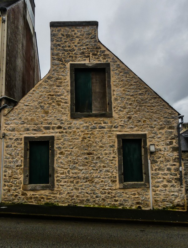 La fenêtre de l'étage, plus large que celles du rez-de-chaussée, a nécessairement les dimensions prévisionnelles d'un usage précis. Barriques de vin pour un grossiste.