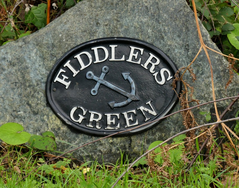 Légende anglo-saxonne du 19ème siècle qui réserve un paradis d'herbe verte où abonderait l'alcool, le tabac et des femmes disponibles, aux marins ayant survécu à 50 ans d'embarquement, le tout sous une musique permanente de violonistes infatigables, les Fiddlers. Un paradis païen qui rappelle la dangerosité des conditions de travail des hommes de la mer. Fiddler's Green = Pré du Violoneux.