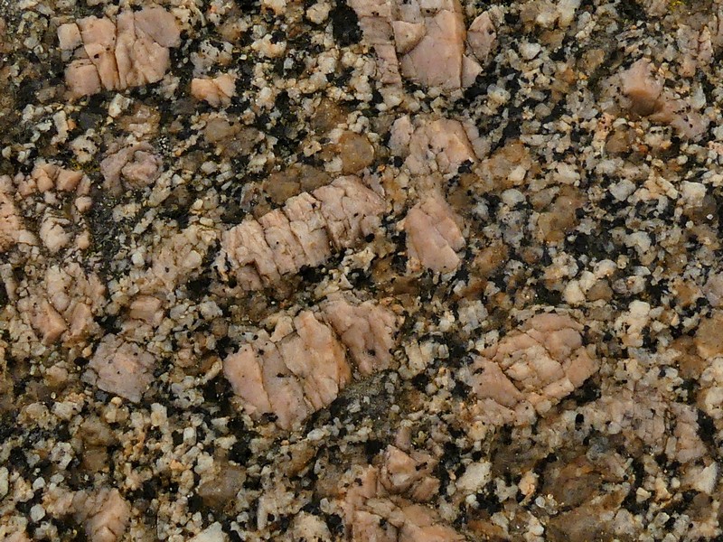 La couleur rose provient du feldspath orthoclase dont la granulométrie varie énormément entre quelques millimètres à quelques centimètres. Entre dans la composition des roches magmatiques.