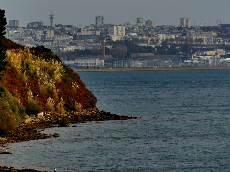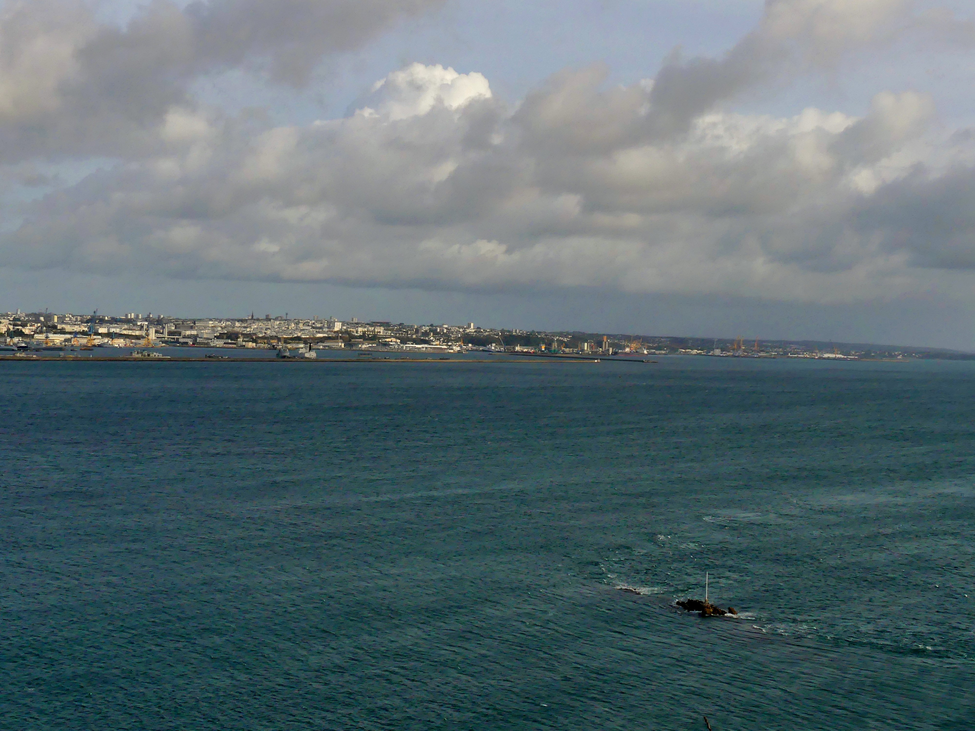 La rade de Brest épouse la côte Nord très échancrée de la presqu'île de