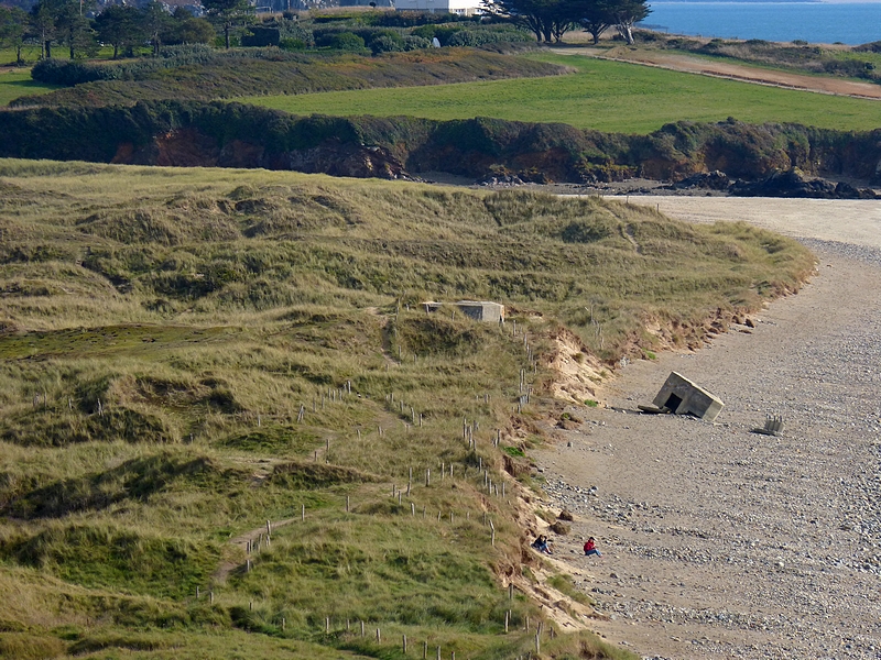 La plage de l'Aber vue de la cuve à canon. Cette plage était recouverte de tétraédes en béton minés et de dispositifs anti-débarquement.