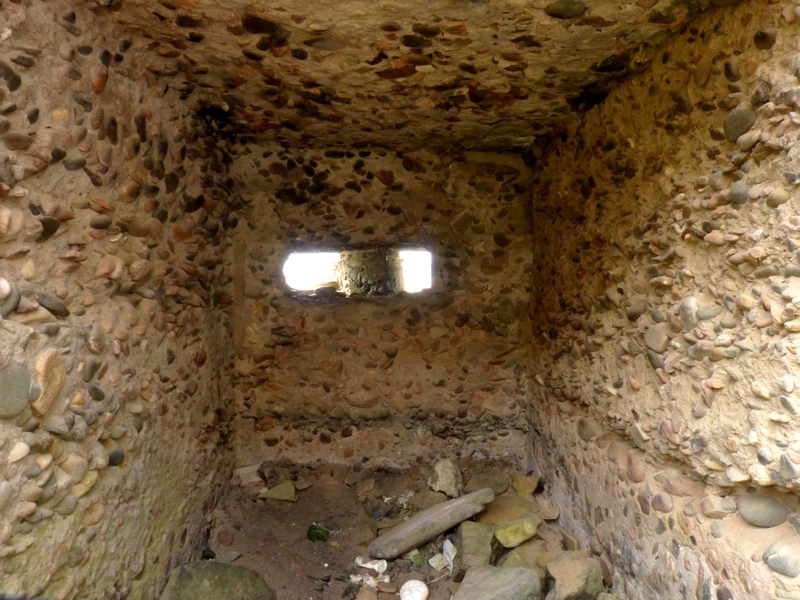 L'embrasure pour une mitrailleuse. Le niveau du terrain d'origine arrivait sous l'embrasure.