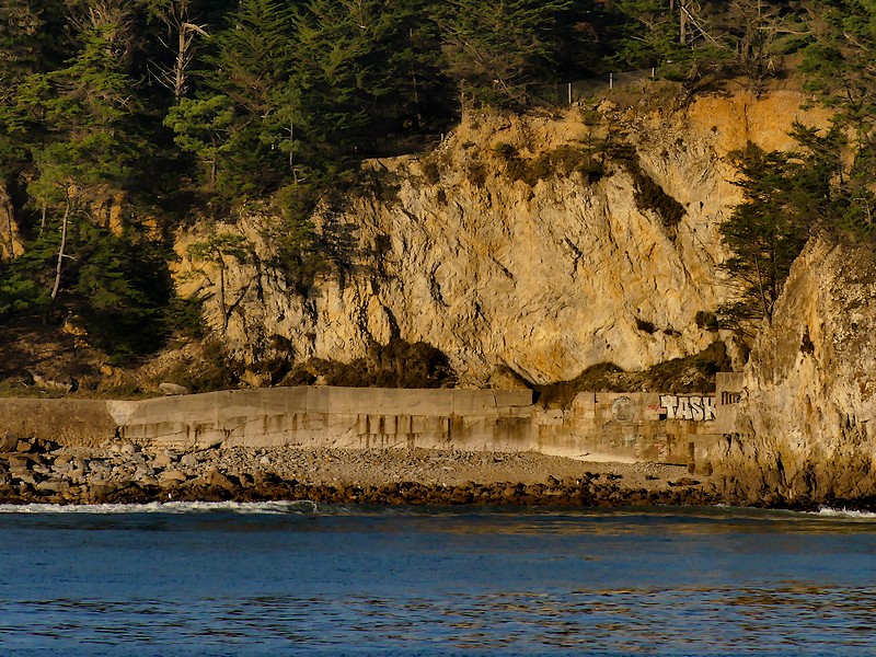 Une surveillance armée de la plage de Morgat. Il subsiste le crépis marbré de graviers pour camoufler. La mer passe sous le bunker un peu plus chaque jour.