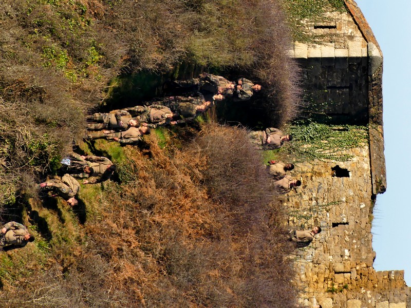 Une marche d'entraînement dans les ruines du fort de la Fraternité pour des militaires de l'armée française en février 2025.