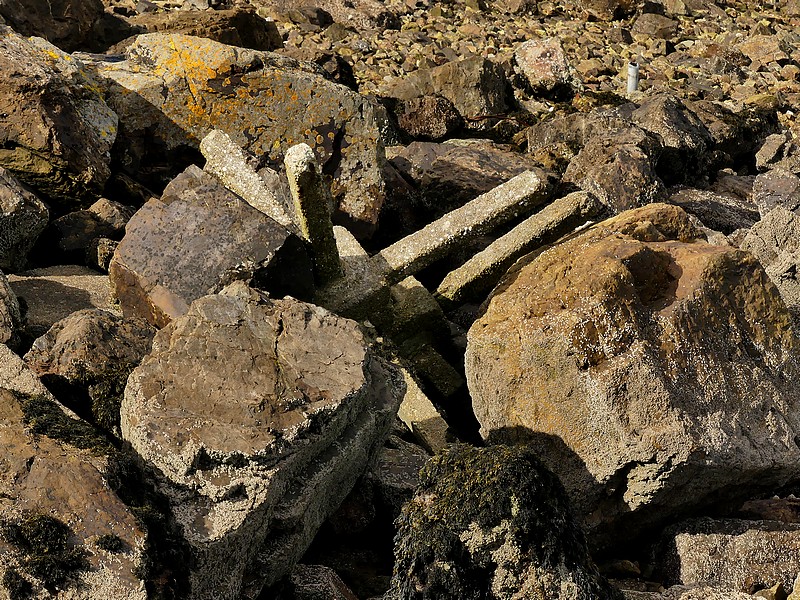 Des obstacles en béton non datés se retrouvent coincés dans les rochers de la plage de Lanvéoc. Des terrains militaires sont à proximité. Fabrication française ou allemande ? L'armée allemande manque de métaux à la fin de la guerre, néanmoins elle privilégie les tétraèdres en béton plutôt que les hérissons de défense plus fragiles.